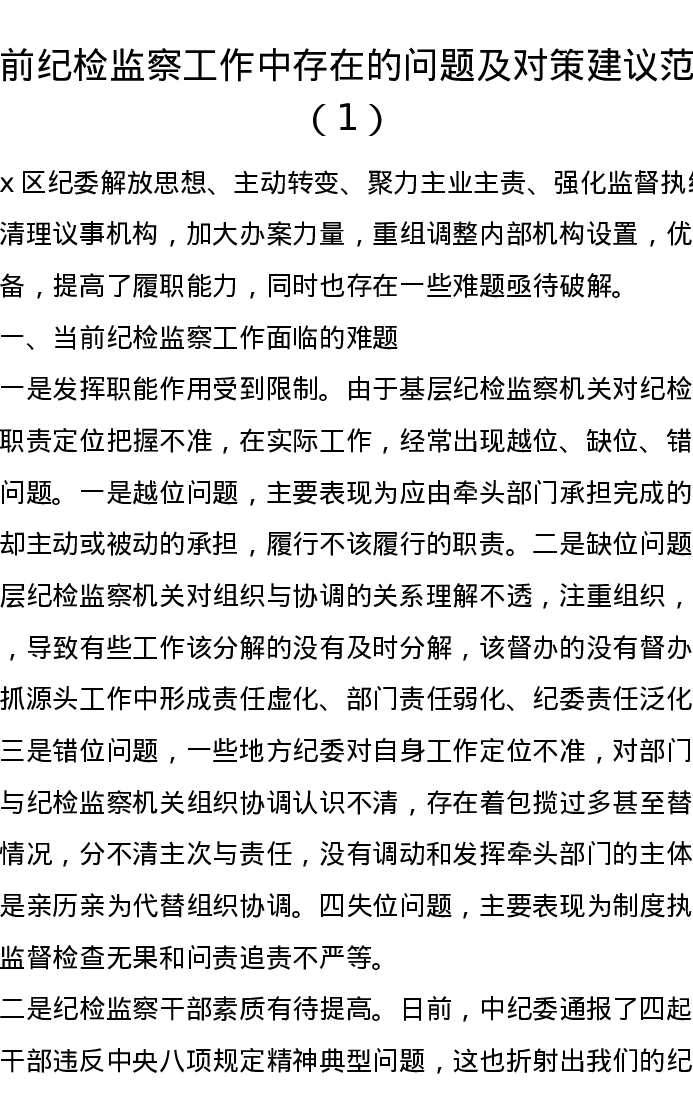 汇编:纪检监察工作问题及对策建议3篇(纪委,调研报告)