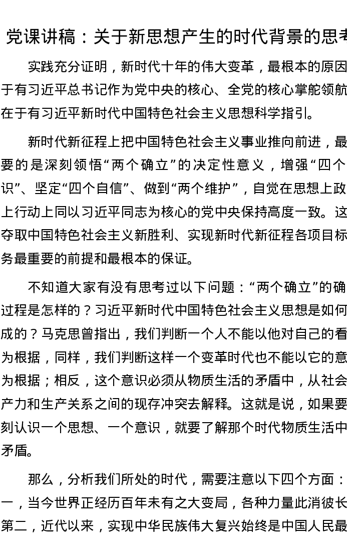 党课讲稿:关于新思想产生的时代背景的思考