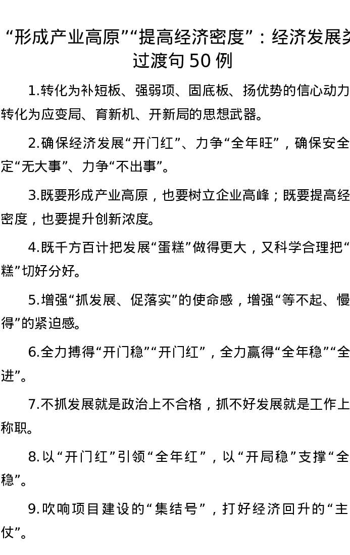 “形成产业高原”“提高经济密度”:经济发展类过渡句50例