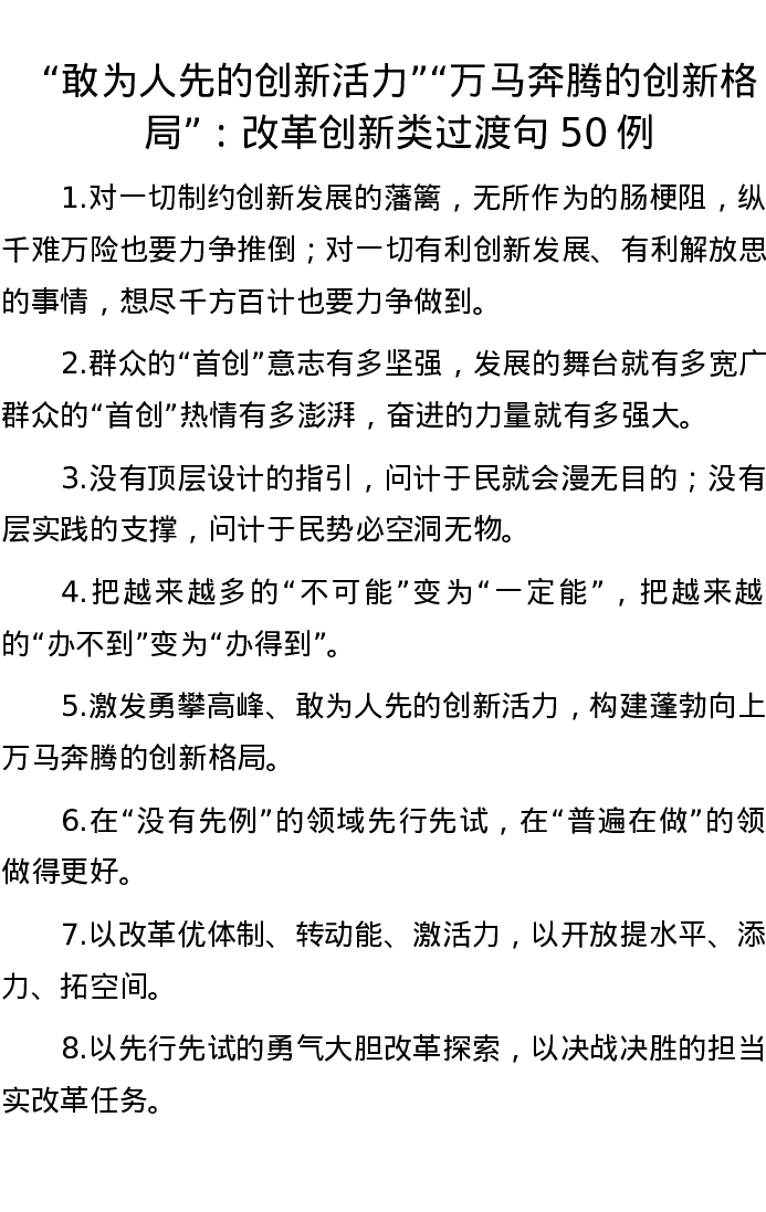 “敢为人先的创新活力”“万马奔腾的创新格局”:改革创新类过渡句50例
