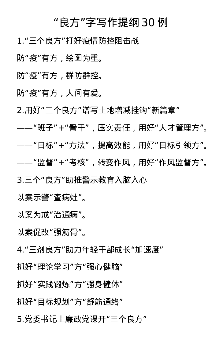 “良方”字写作提纲30例