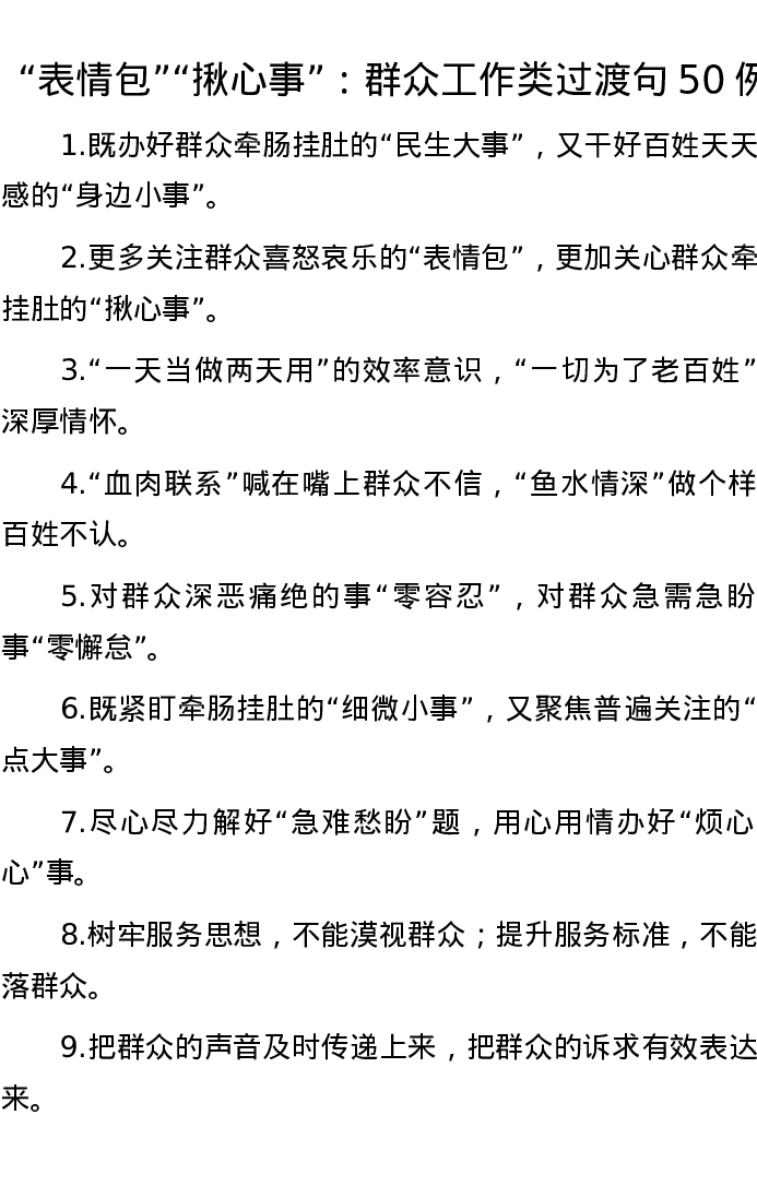 “表情包”“揪心事”:群众工作类过渡句50例