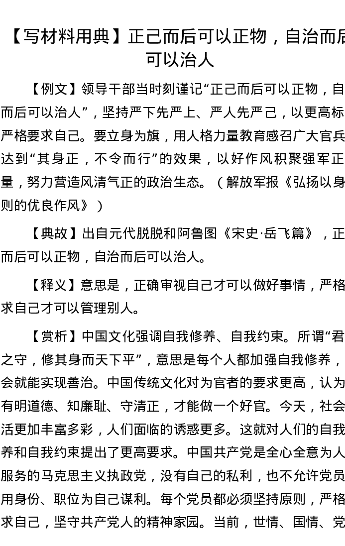 【写材料用典】正己而后可以正物,自治而后可以治人