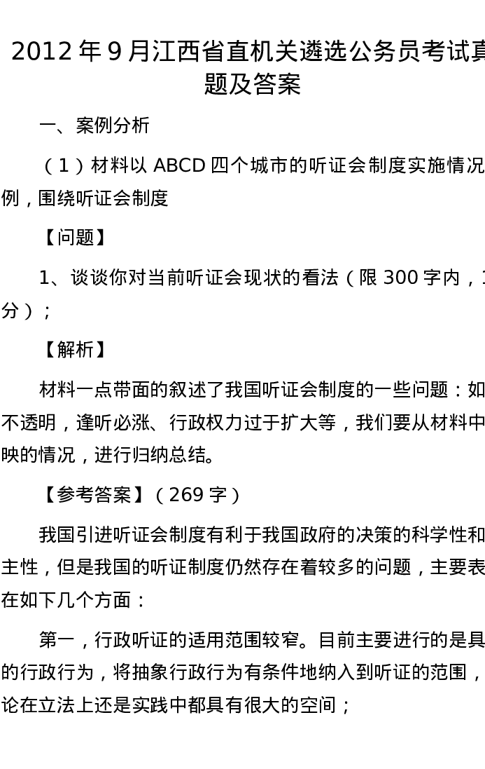 2012年9月江西省直机关遴选公务员考试真题及答案