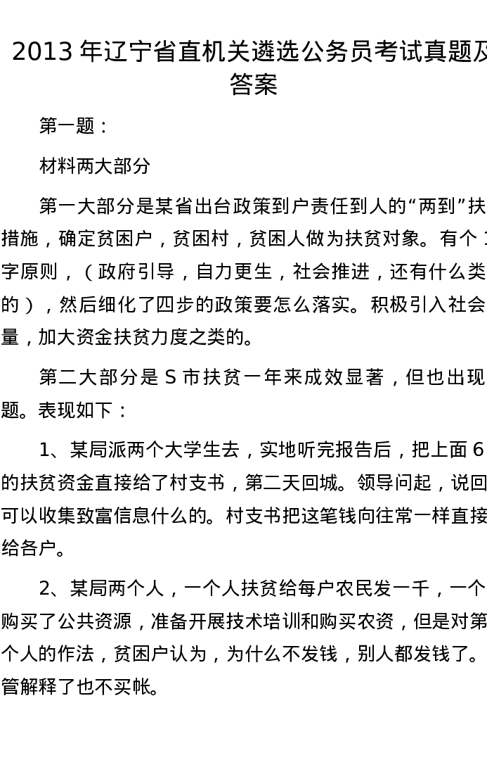 2013年辽宁省直机关遴选公务员考试真题及答案