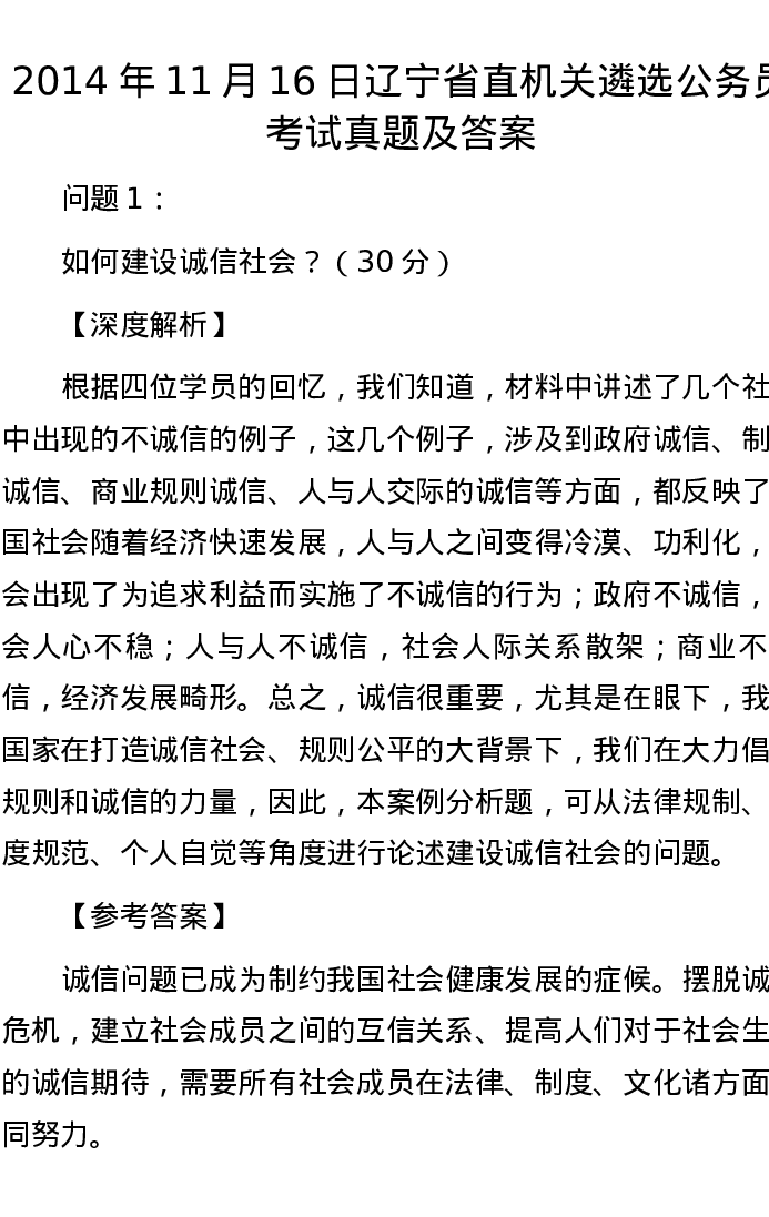 2014年11月16日辽宁省直机关遴选公务员考试真题及答案