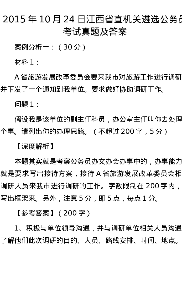 2015年10月24日江西省直机关遴选公务员考试真题及答案