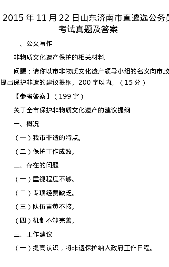 2015年11月22日山东济南市直遴选公务员考试真题及答案