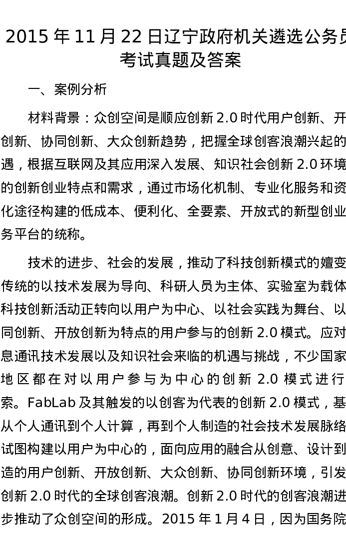 2015年11月22日辽宁政府机关遴选公务员考试真题及答案