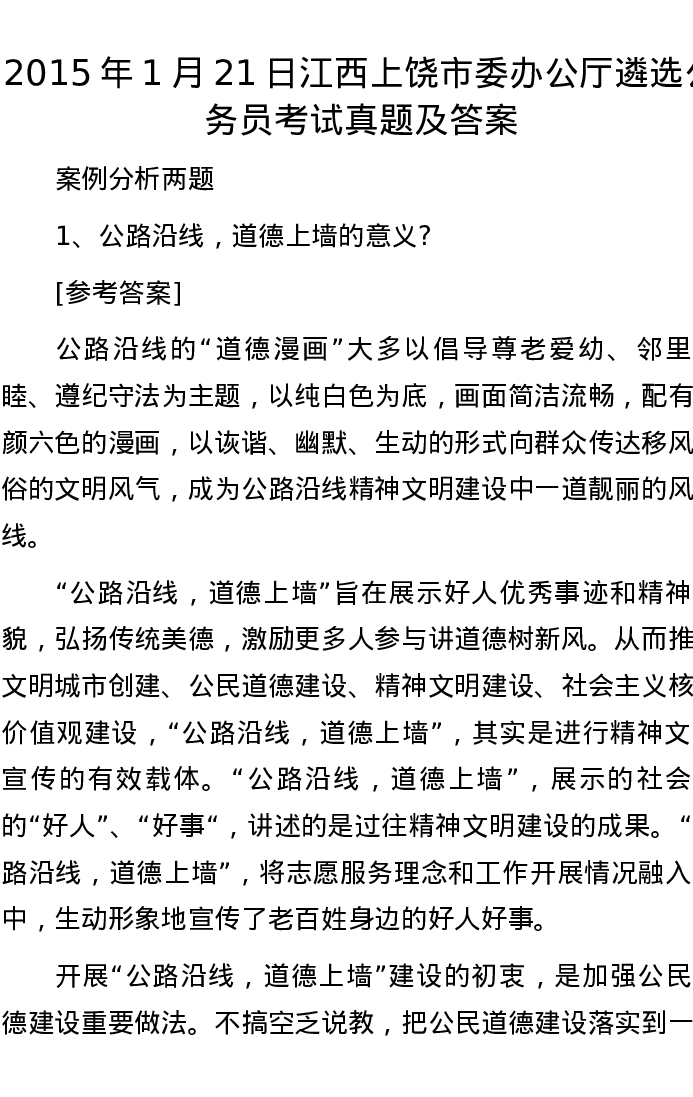 2015年1月21日江西上饶市委办公厅遴选公务员考试真题及答案