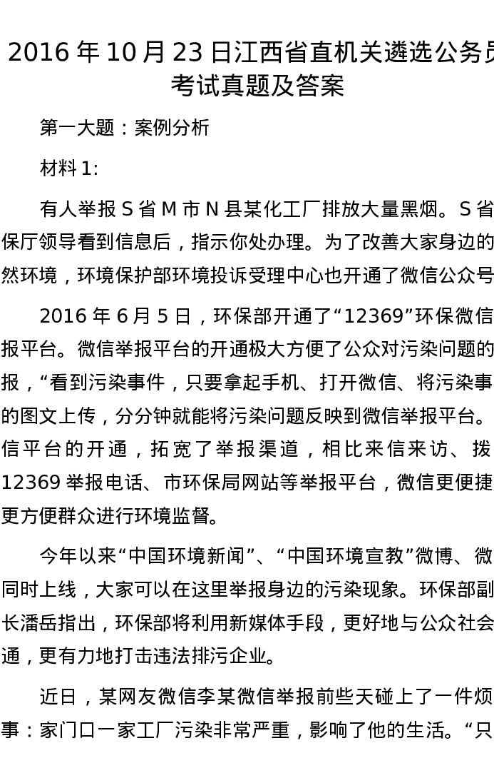 2016年10月23日江西省直机关遴选公务员考试真题及答案