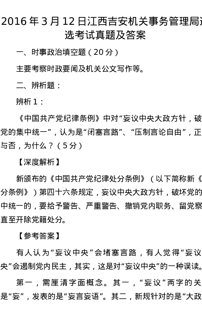 2016年3月12日江西吉安机关事务管理局遴选考试真题及答案