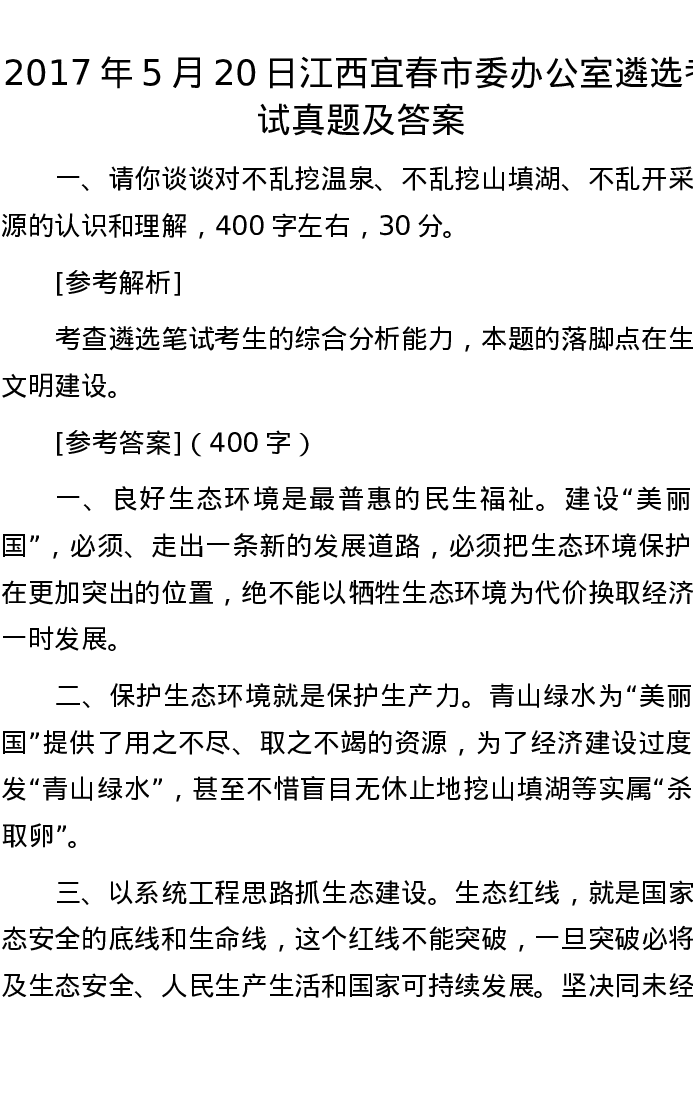 2017年5月20日江西宜春市委办公室遴选考试真题及答案