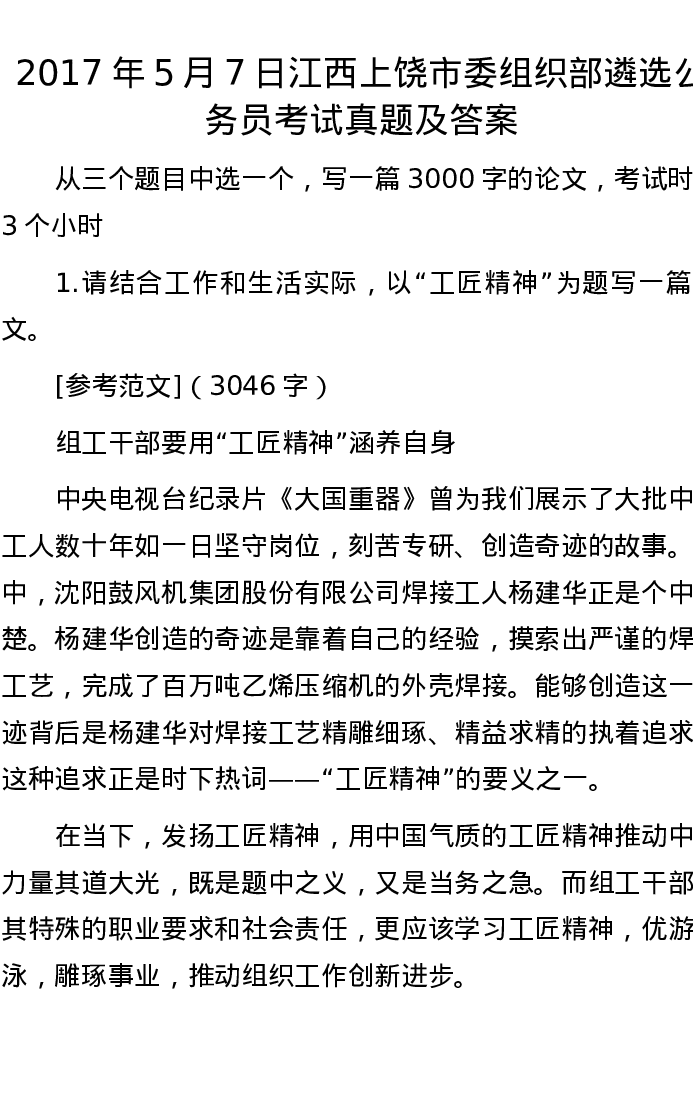 2017年5月7日江西上饶市委组织部遴选公务员考试真题及答案