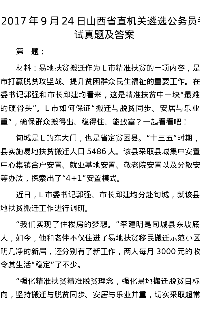 2017年9月24日山西省直机关遴选公务员考试真题及答案