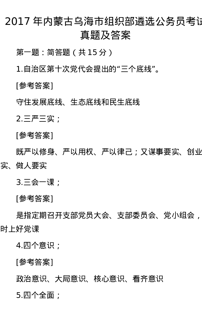 2017年内蒙古乌海市组织部遴选公务员考试真题及答案