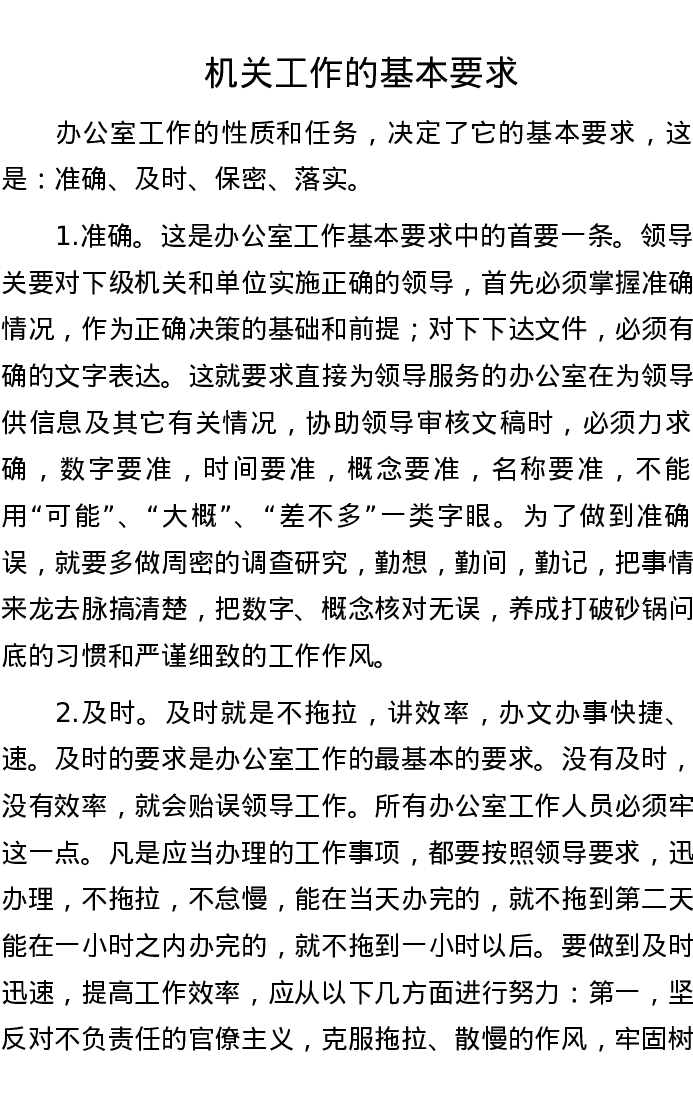 机关工作的基本要求