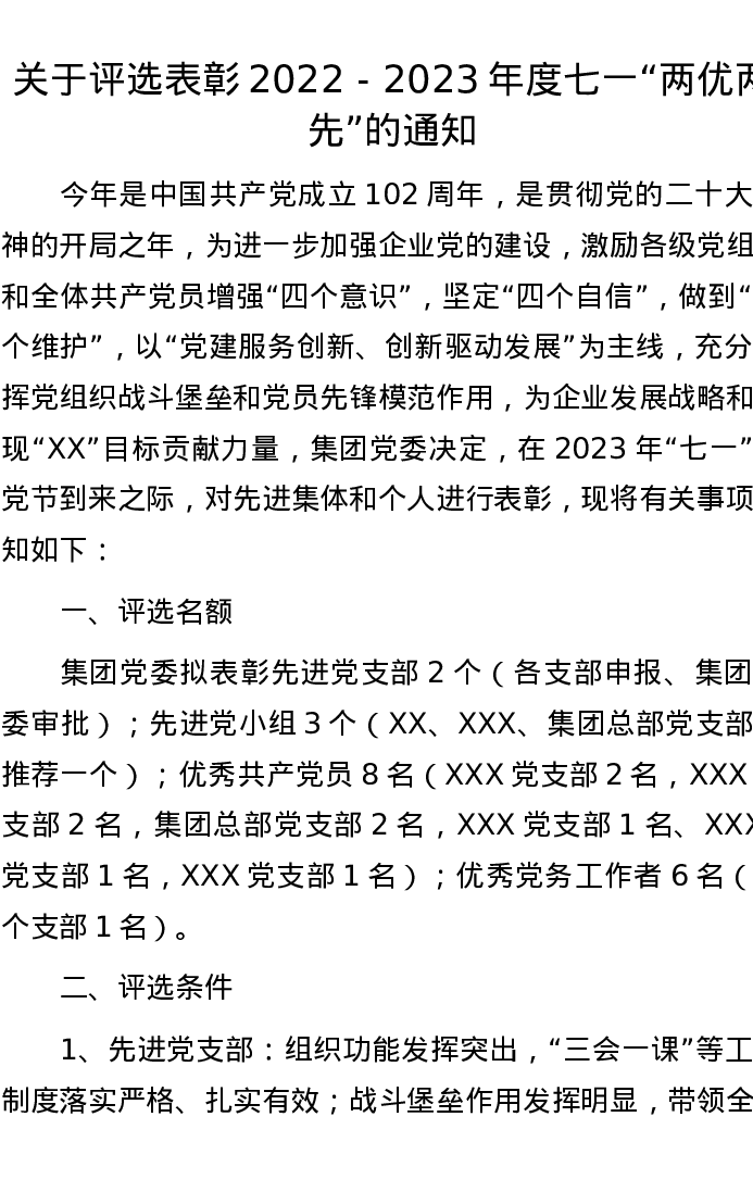 关于评选表彰2022-2023年度七一“两优两先”的通知