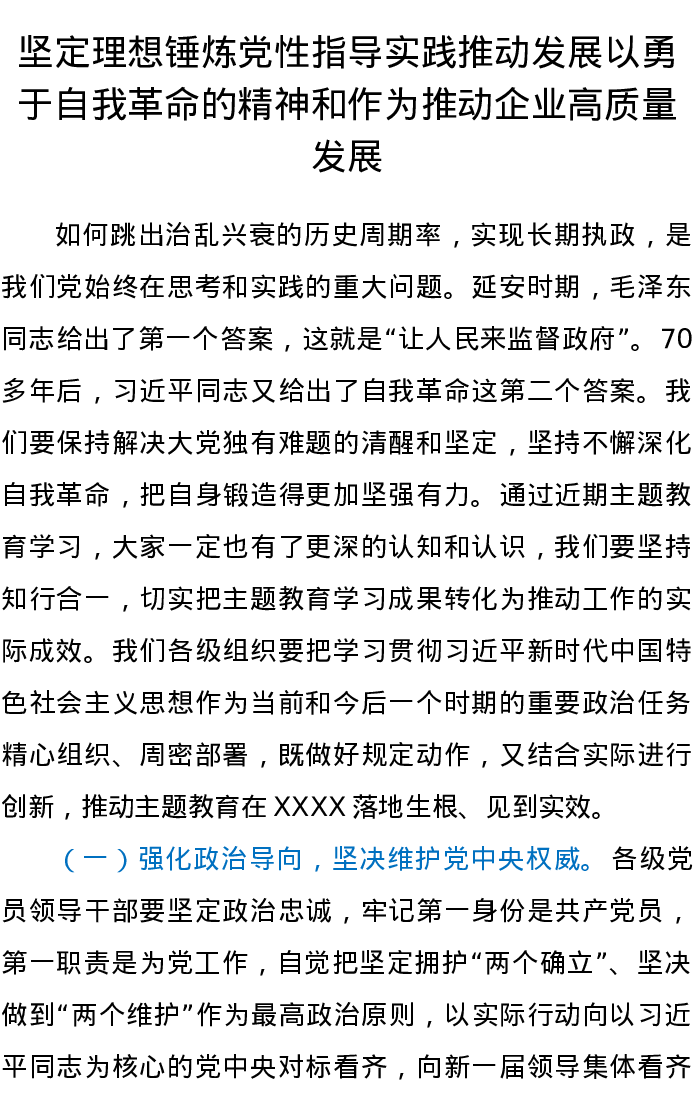 主题教育专题党课——“把党的伟大自我革命进行到底”(特色社会主义思想)