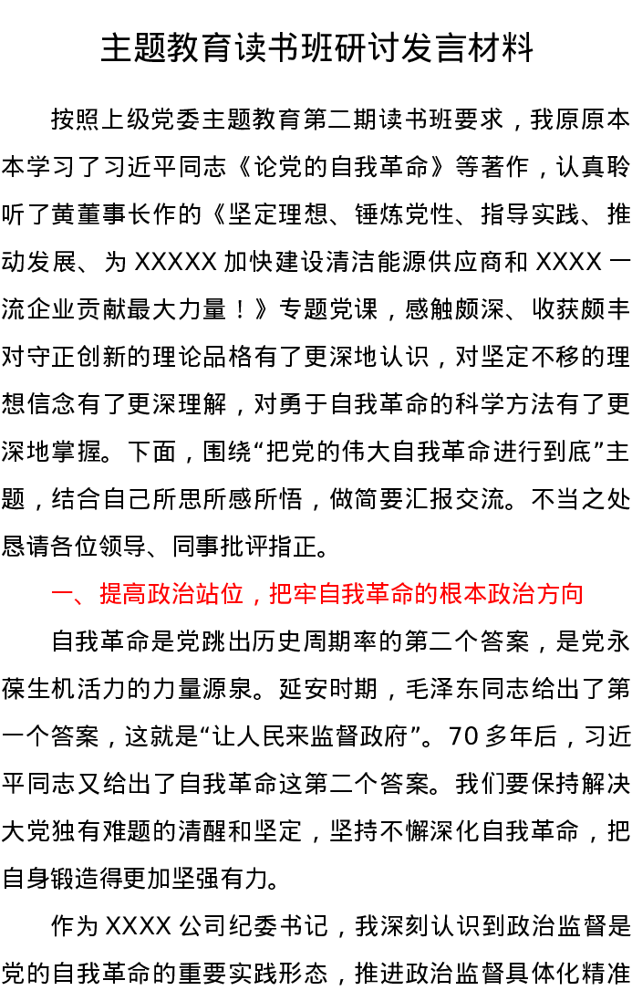 主题教育读书班研讨发言材料(特色社会主义思想)