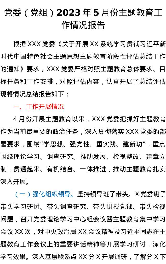 党委(党组)2023年5月份主题教育工作情况报告(特色社会主义思想) (1)