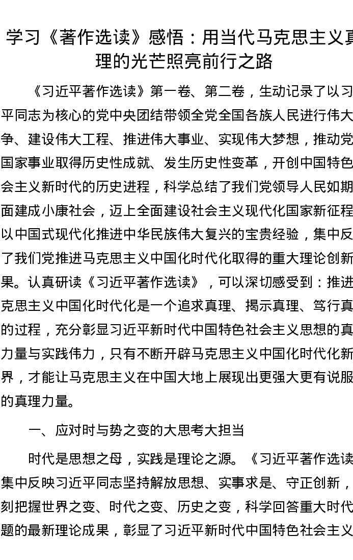学习《著作选读》感悟:用当代马克思主义真理的光芒照亮前行之路