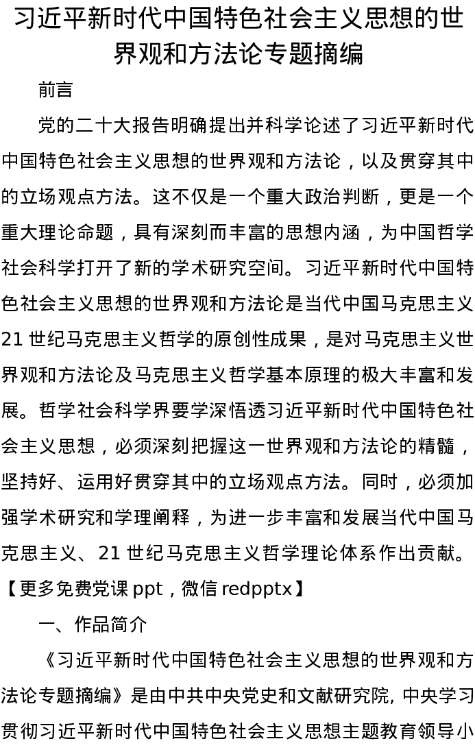 PPT:新时代中国特色社会主义思想的世界观和方法论专题摘编读书分享课件t