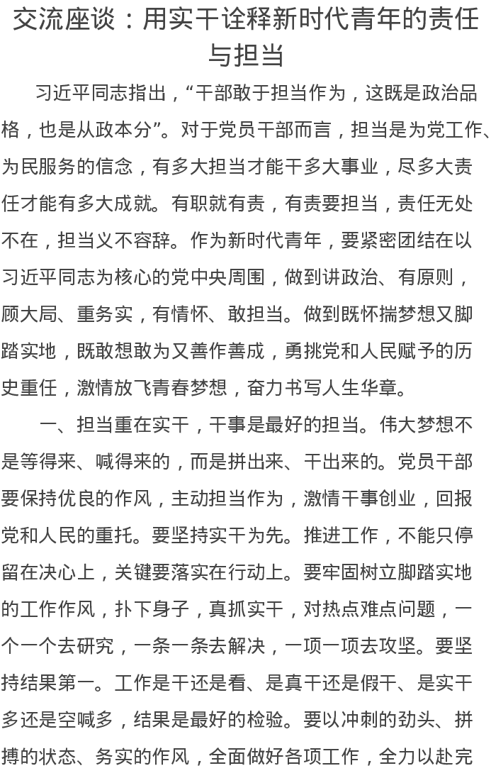 交流座谈发言:用实干诠释新时代青年的责任与担当