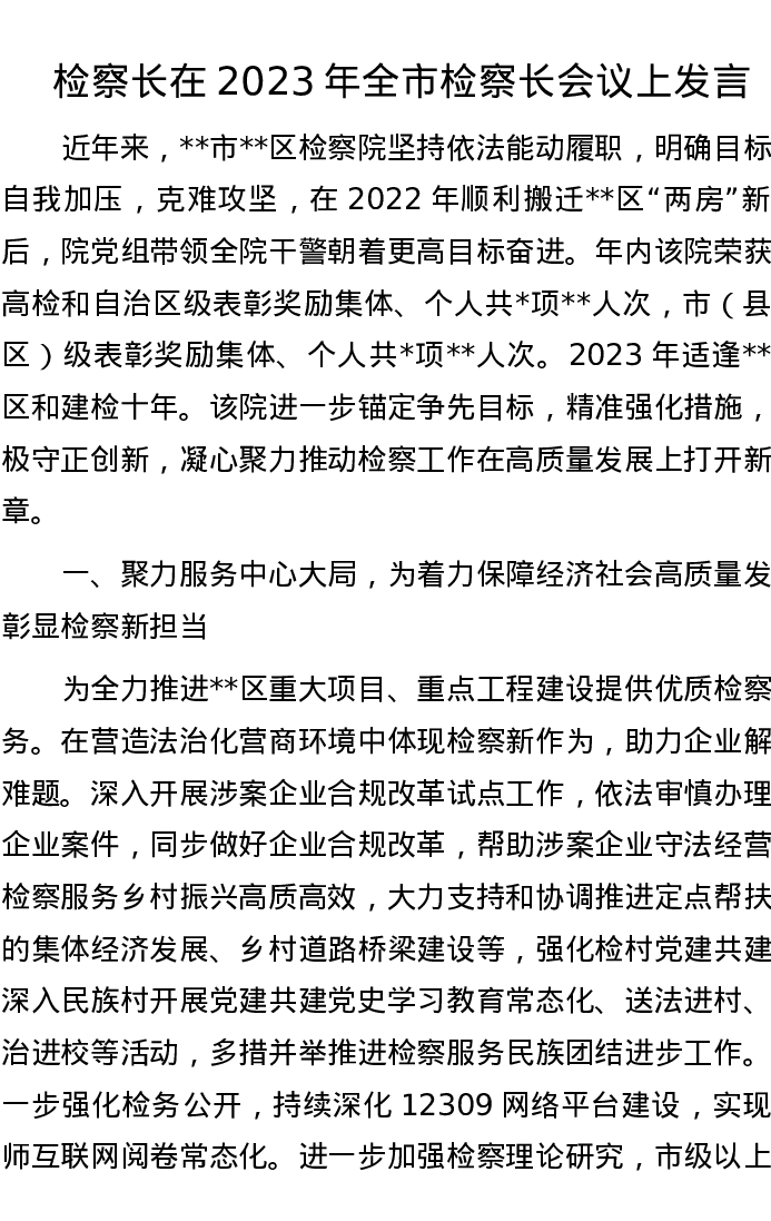 检察长在2023年全市检察长会议上发言