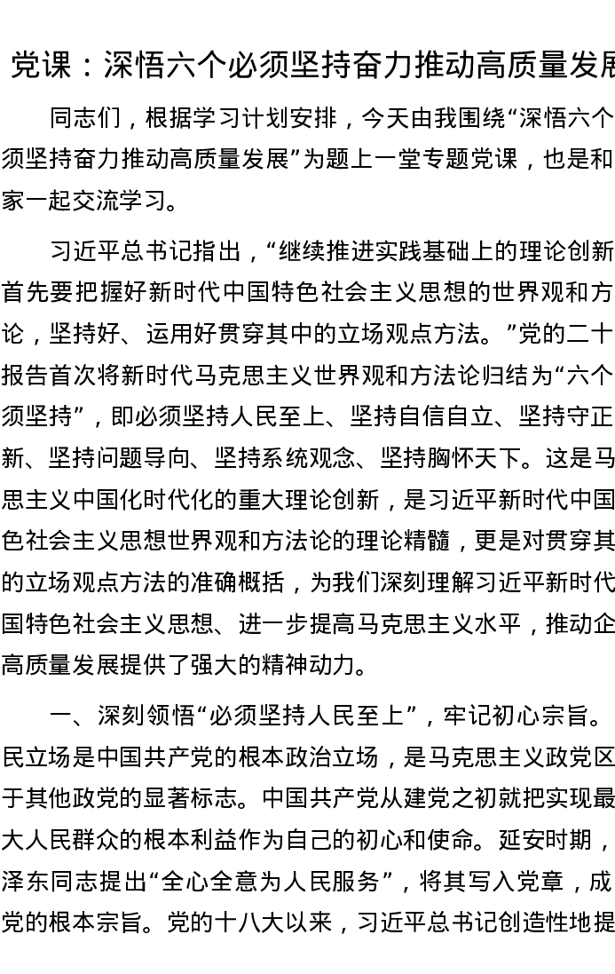 党课:深悟六个必须坚持 奋力推动高质量发展