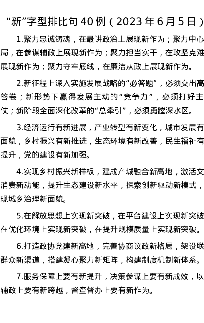 “新”字型排比句40例(2023年6月5日)