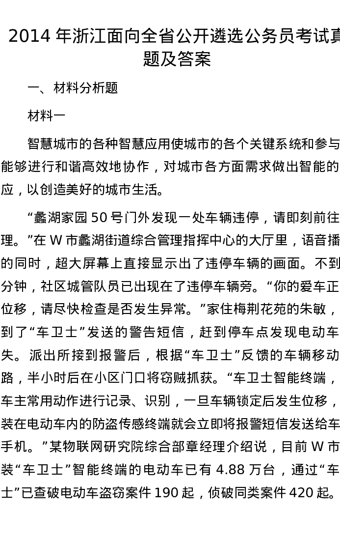 2014年浙江面向全省公开遴选公务员考试真题及答案
