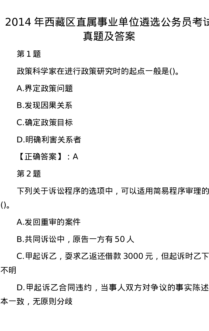 2014年西藏区直属事业单位遴选公务员考试真题及答案