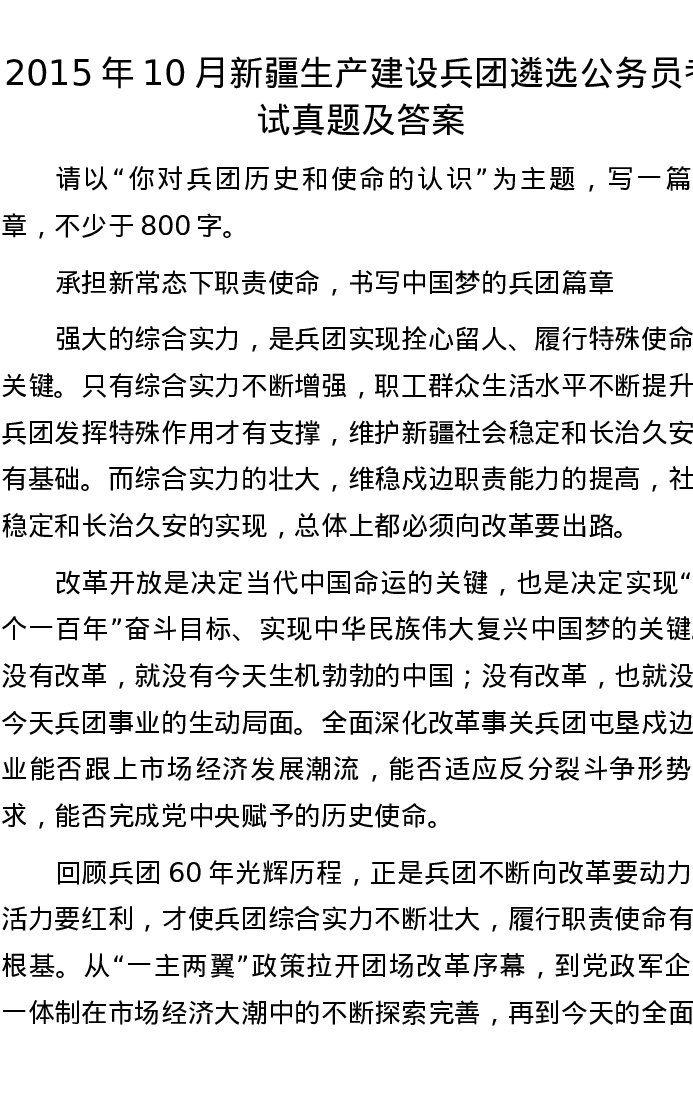 2015年10月新疆生产建设兵团遴选公务员考试真题及答案