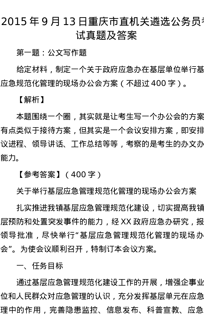 2015年9月13日重庆市直机关遴选公务员考试真题及答案