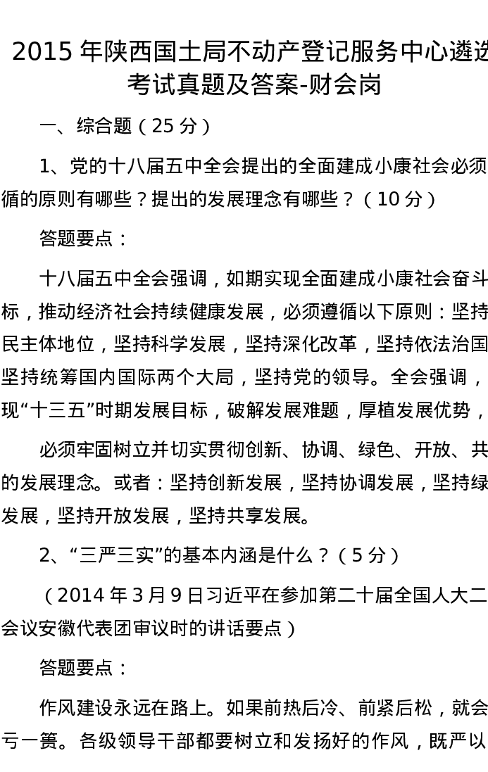 2015年陕西国土局不动产登记服务中心遴选考试真题及答案-财会岗