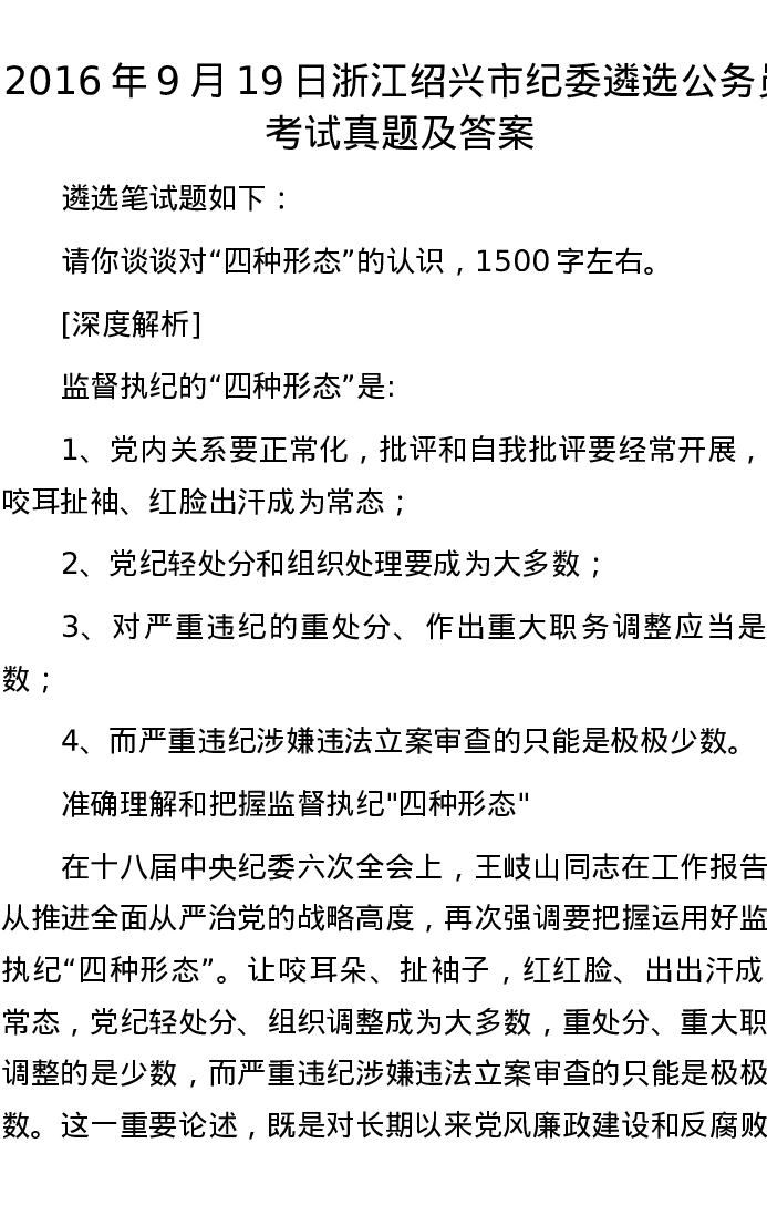 2016年9月19日浙江绍兴市纪委遴选公务员考试真题及答案