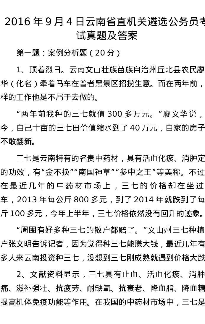 2016年9月4日云南省直机关遴选公务员考试真题及答案