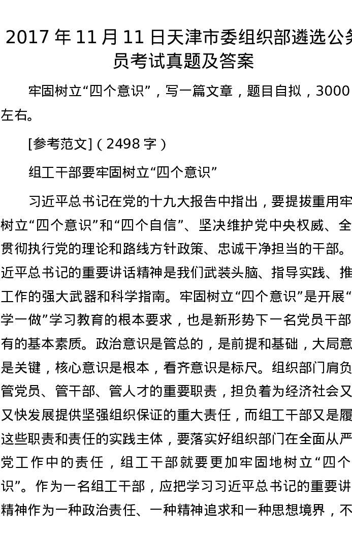 2017年11月11日天津市委组织部遴选公务员考试真题及答案