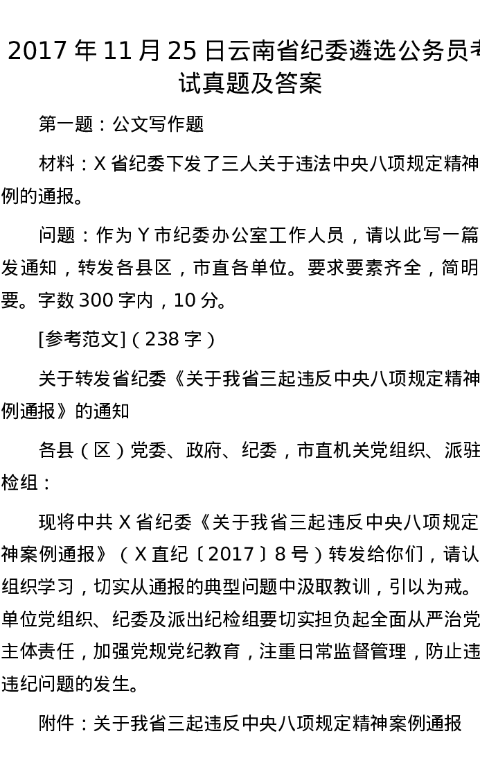 2017年11月25日云南省纪委遴选公务员考试真题及答案