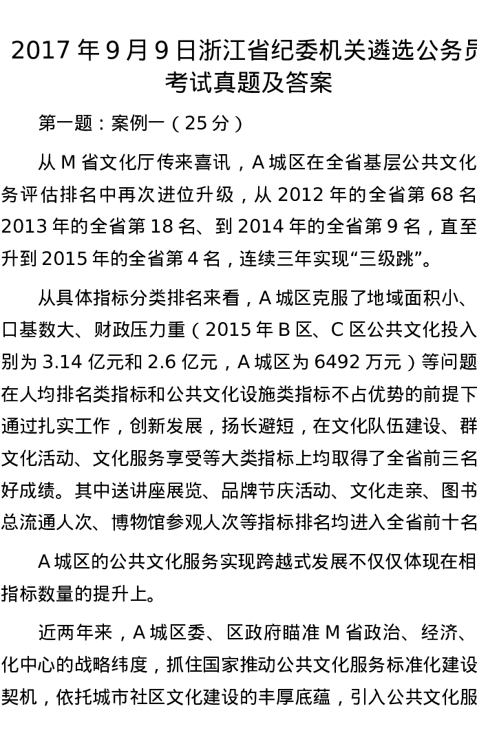 2017年9月9日浙江省纪委机关遴选公务员考试真题及答案