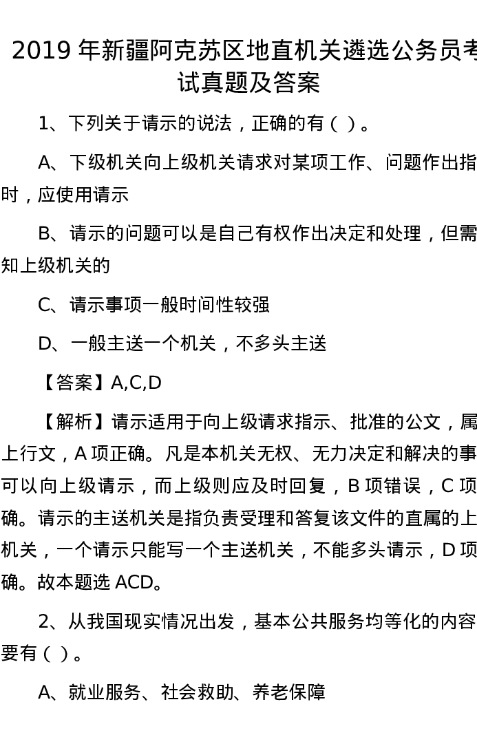 2019年新疆阿克苏区地直机关遴选公务员考试真题及答案