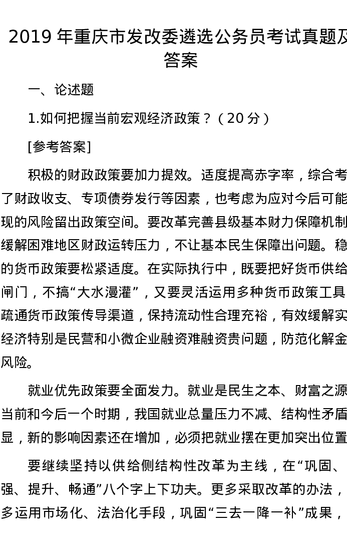 2019年重庆市发改委遴选公务员考试真题及答案