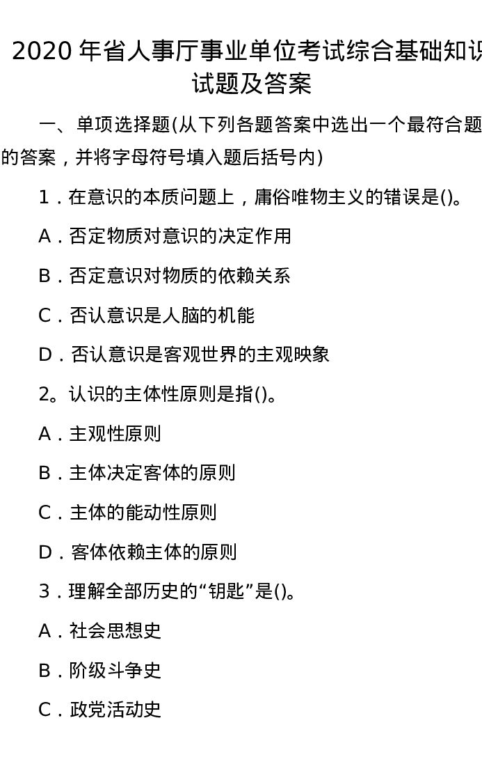 2020年省人事厅事业单位考试综合基础知识试题及答案