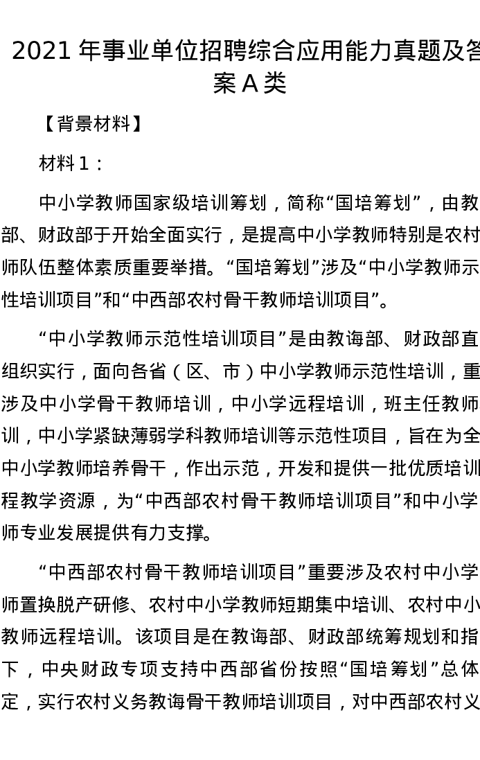 2021年事业单位招聘综合应用能力真题及答案A类