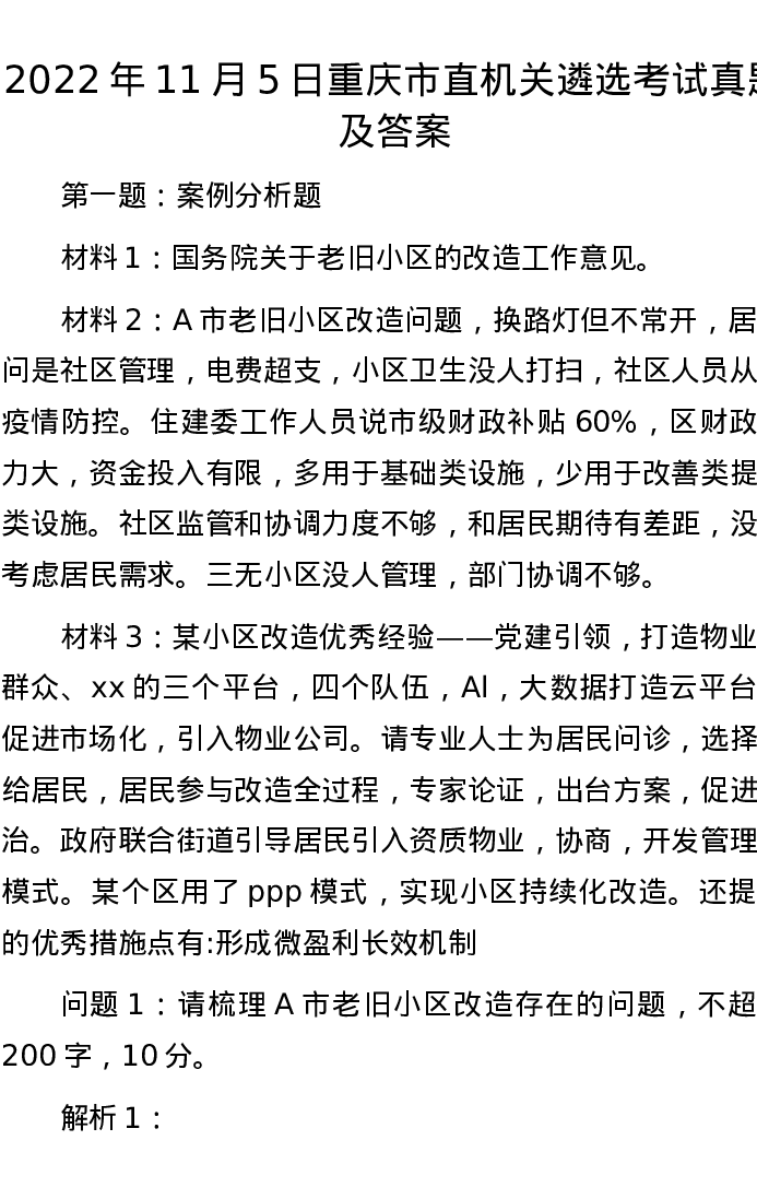 2022年11月5日重庆市直机关遴选考试真题及答案