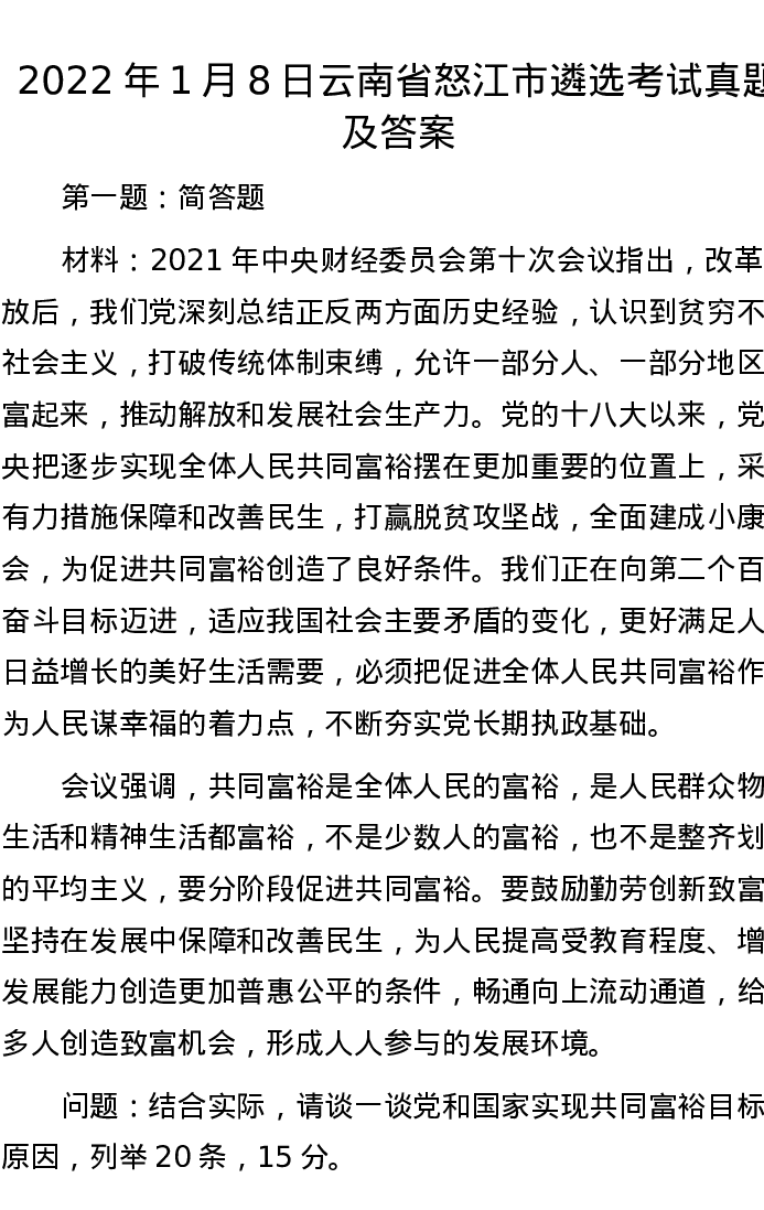 2022年1月8日云南省怒江市遴选考试真题及答案