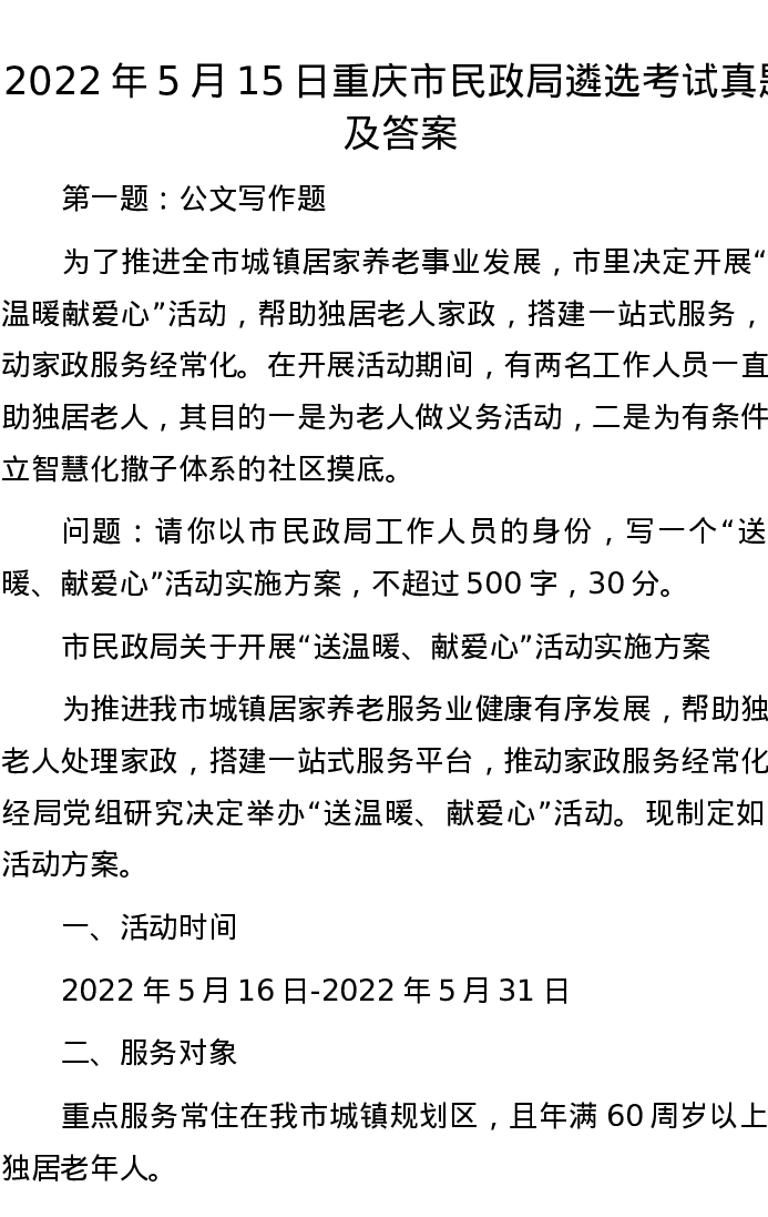 2022年5月15日重庆市民政局遴选考试真题及答案