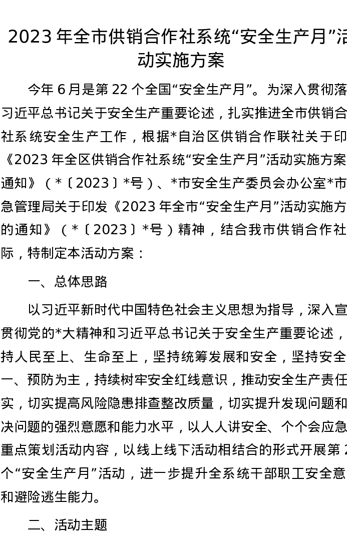 2023年全市供销合作社系统“安全生产月”活动实施方案