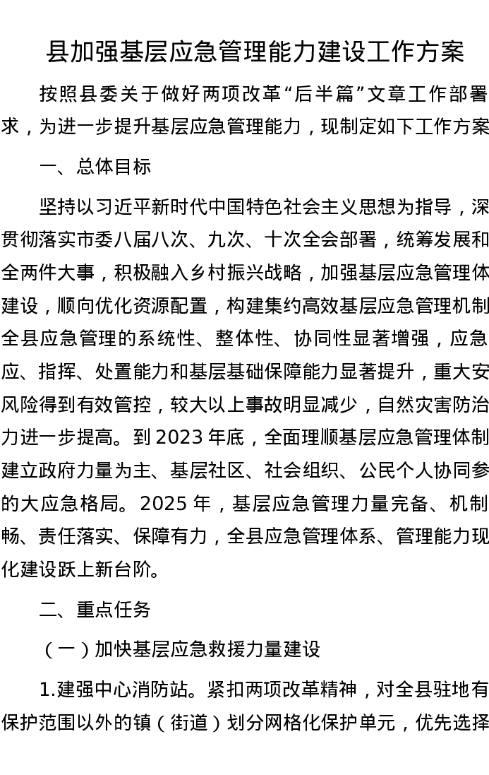 县加强基层应急管理能力建设工作方案